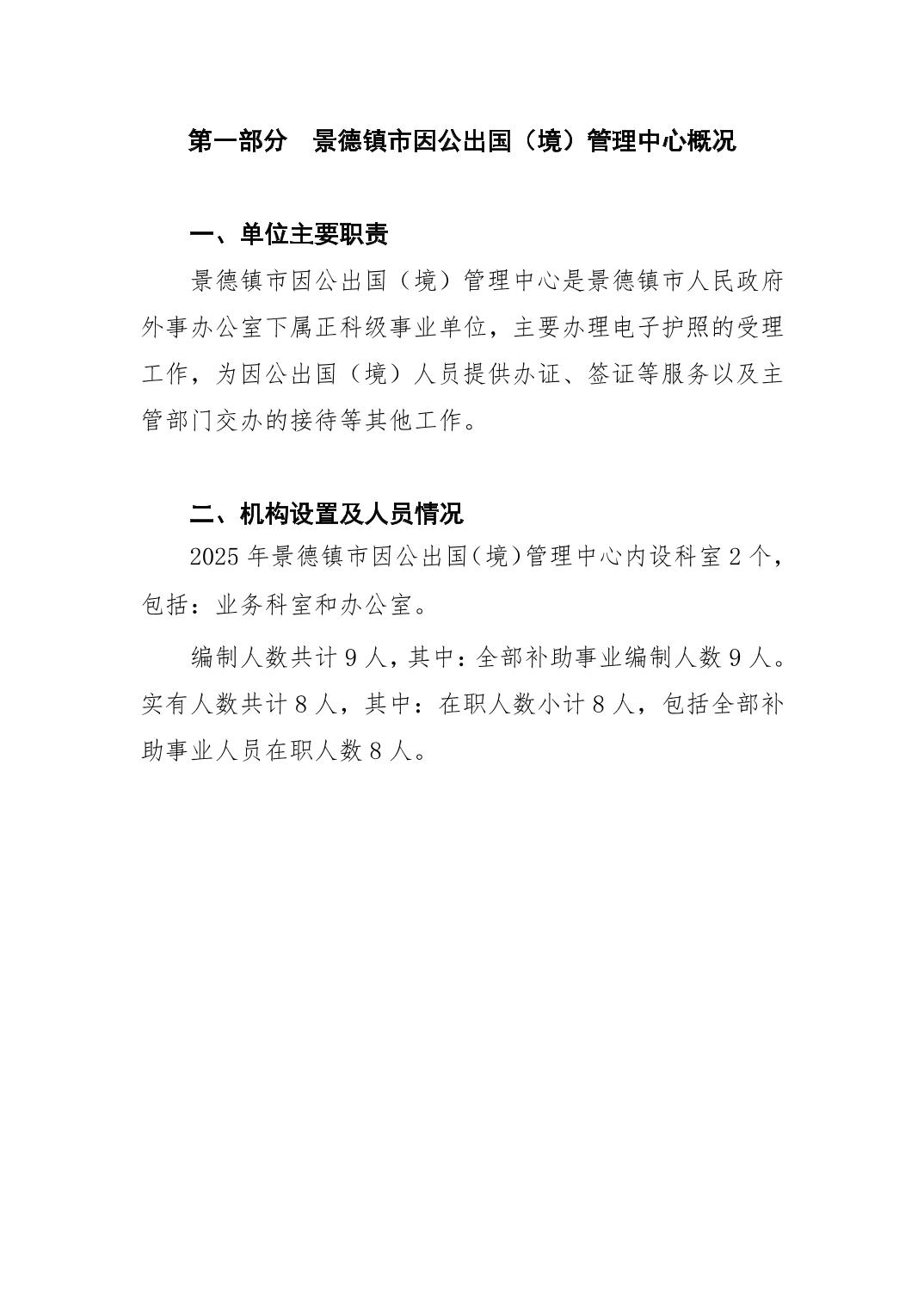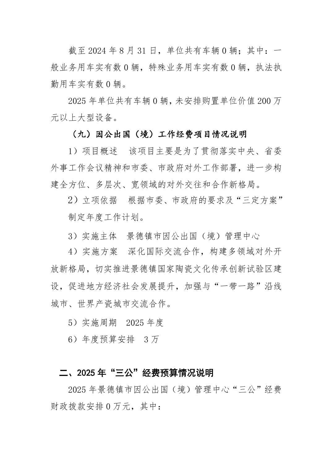 景德镇市因公出国(境)管理中心2025年单位预算
