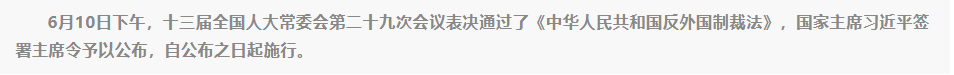 第十一条 我国境内的组织和个人应当执行国务院有关部门采取的反制措施。