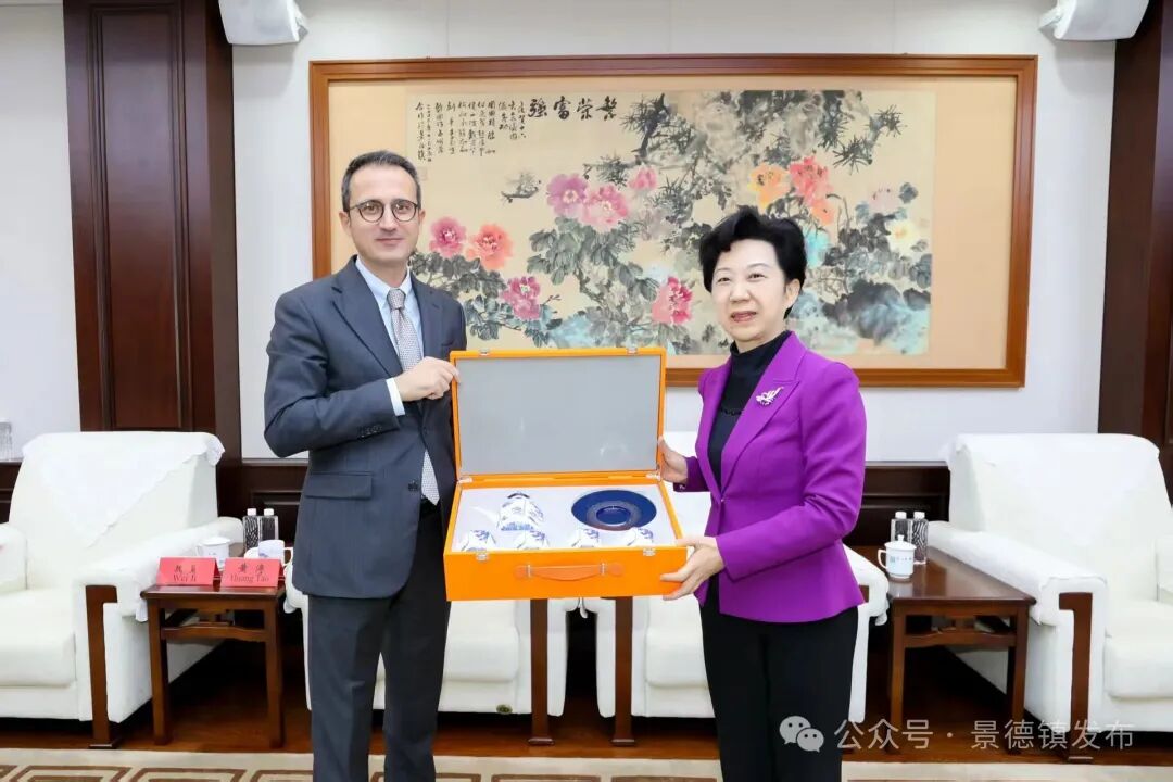 胡雪梅对阿里夫·卡拉曼一行的到来表示热烈欢迎。她说,“有朋自远方来,不亦乐乎。”景德镇是闻名中外的国际瓷都,是海上丝绸之路的主要起点城市和重要货源地,拥有2000多年的冶陶史、1000多年的官窑史、600多年的御窑史,是世界上唯一一座以陶瓷产业支撑千年发展的城市。今天的景德镇,自信从容走出去,开放包容请进来,以瓷为媒,拥抱世界,已经与世界72个国家180多个城市建立友好往来,吸引了世界各地“景漂”来这里寻梦圆梦,其中就有很多来自土耳其的“洋景漂”。伊兹尼克作为土耳其的“瓷都”,虽与景德镇相隔万里,却因共享文化价值而紧密相连。自2021年建立国际友好城市关系以来,两市交流日益密切。希望双方以 瓷为纽带,持续深化友谊,推动合作从文化交流向更宽领域拓展,助力两市友好关系行稳致远,并为深化中土两国友好关系作出积极贡献。